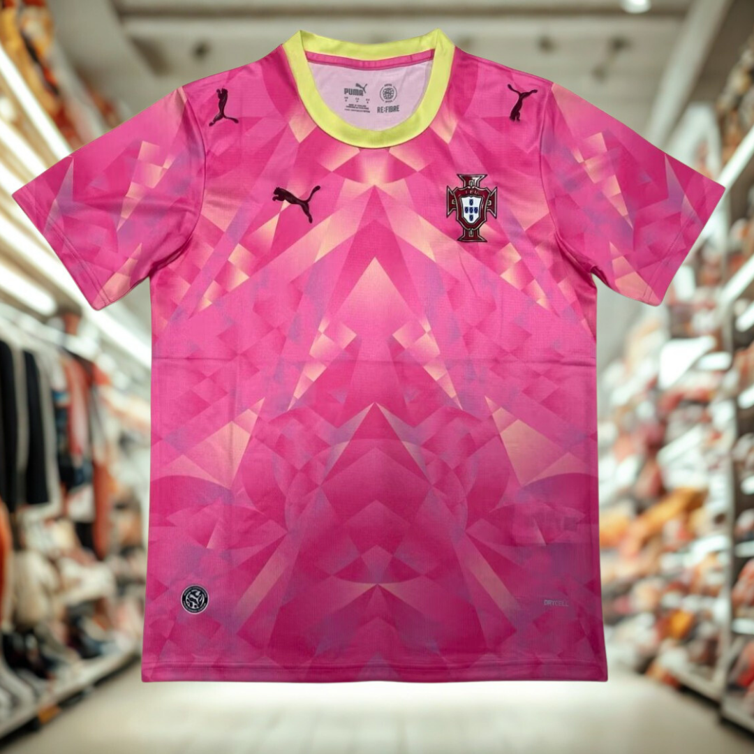 A Jersey Preta da Seleção de Treino Portugal Rosa COPA 2026, chega com um visual imponente e moderno, trazendo uma combinação perfeita entre estilo premium, conforto e tecnologia avançada.ch