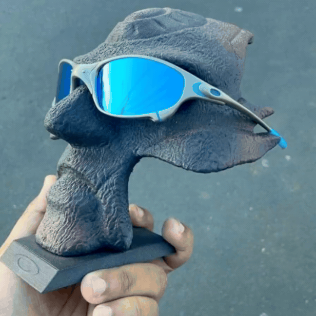 Juju Plasma Icethug é puro impacto visual. Com armação em liga metálica na tonalidade prata e lentes espelhadas azul safira, ele carrega o DNA de um óculos de colecionador, com pegada esportiva e acabamento técnico.