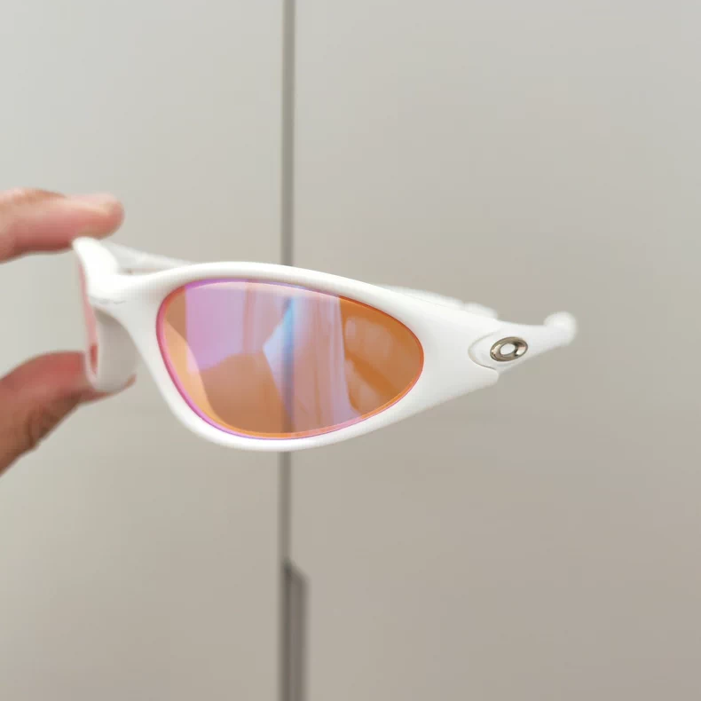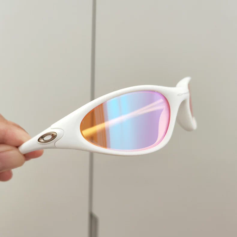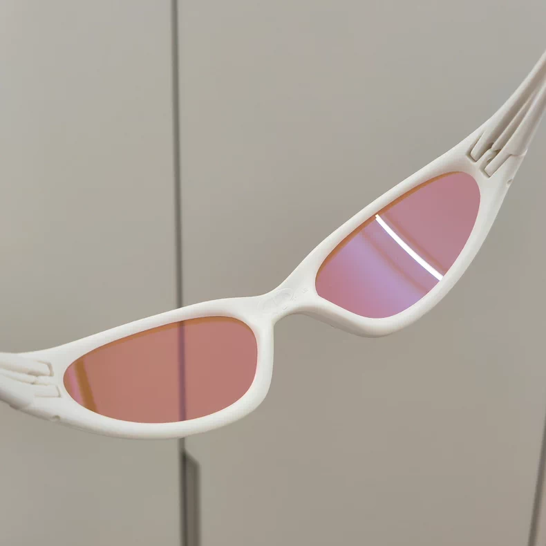 A armação em material leve oferece encaixe firme sem pressionar o rosto, enquanto o acabamento branco fosco adiciona aquele toque moderno que se destaca em qualquer ocasião.